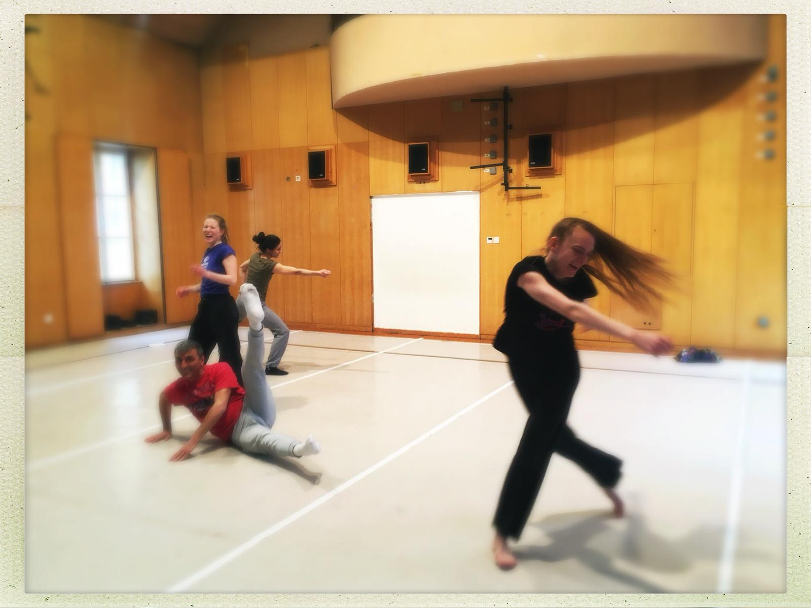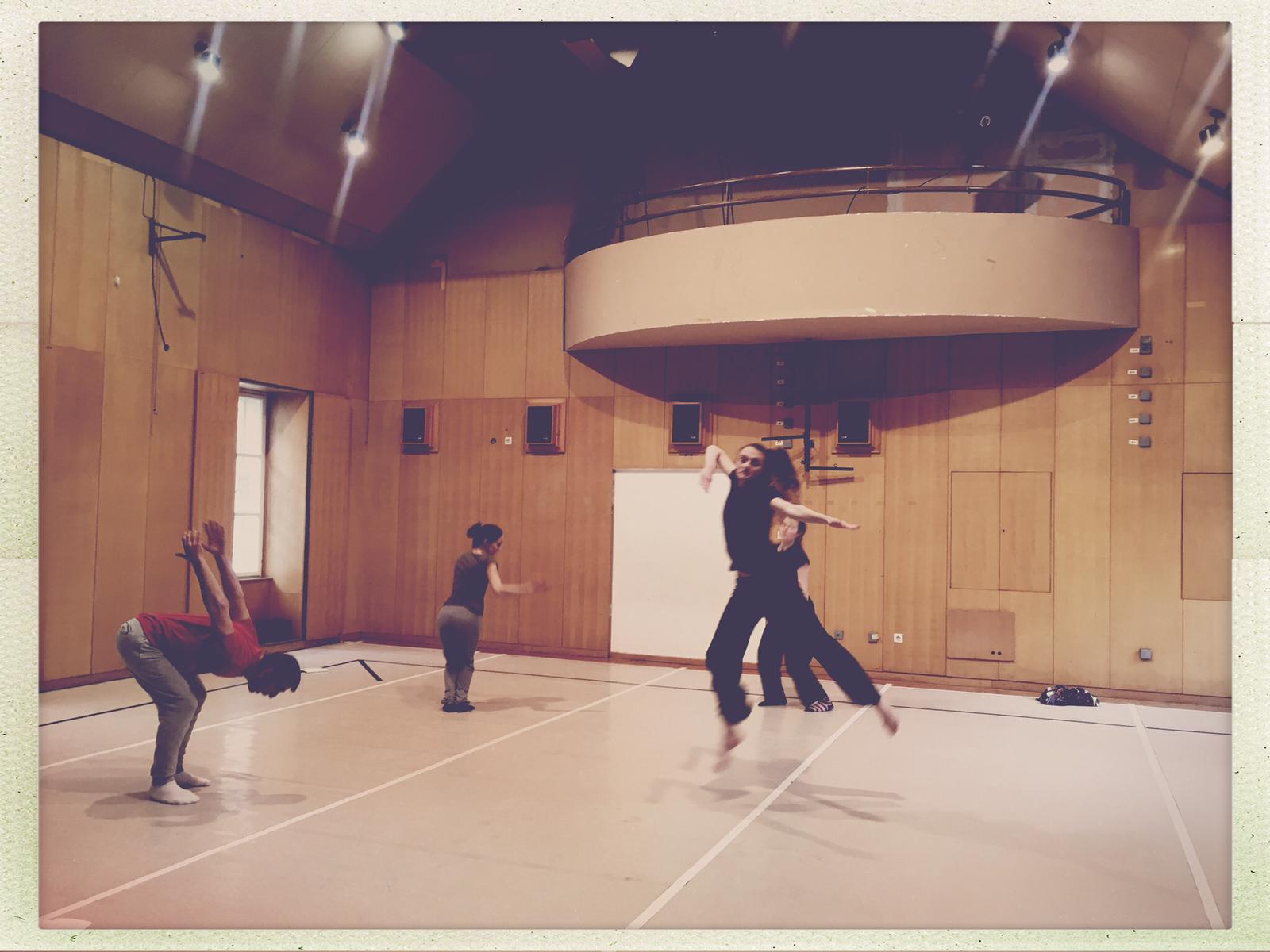 Na radionici Poezija i fizikalitet, smo se bavili pronalaženjem alata za translataciju poetske forme u pokret. Naslanjajući se na odabrane poetske materijale poput osmerca, istraživali smo mogućnosti prijenosa u individualne plesne materijale koji bi funkcionirali u odnosu tria. U koreografiranju tih plesnih odgovora, naglasak smo stavljali na krajeve i početke pokreta, rimu i ispitivali smo što je uopće kraj pokreta, stiha ili pjesme te kako neki kraj može postati početak i obrnuto. Osim toga, materijale smo tražili i kroz različite tehnike zaustavljanja pokreta, proizašle iz pauza i njezinih sinonima koje pronalazimo u plesu i poeziji.